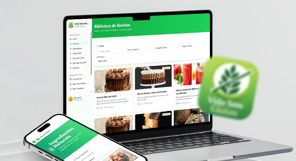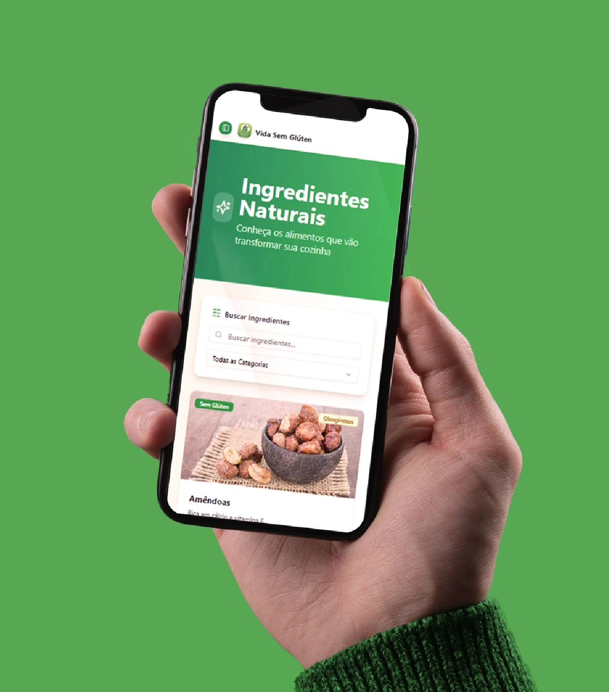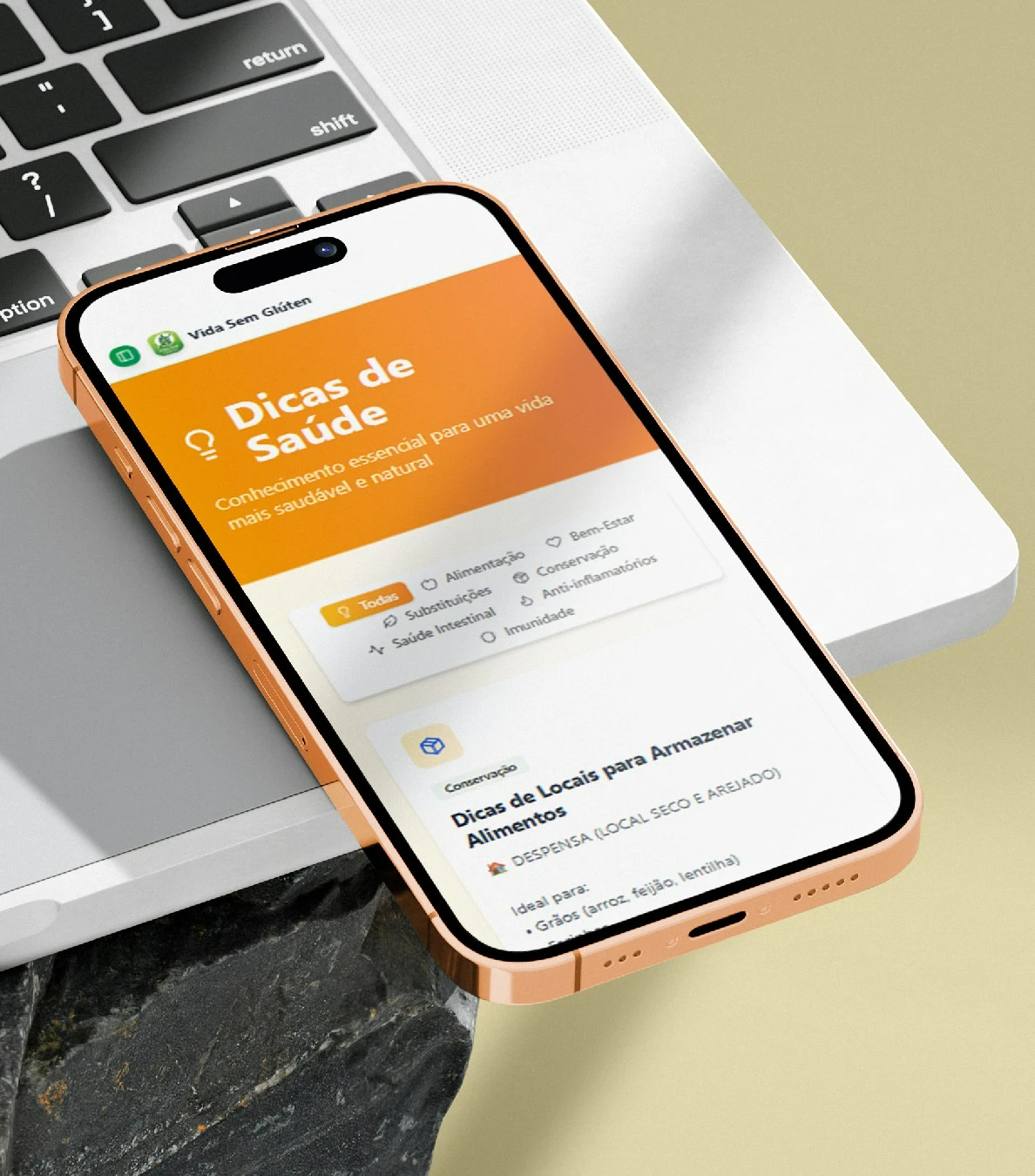 Nós entendemos que a maior dificuldade não é só “parar de comer glúten”, mas sim saber o que colocar no lugar. Por isso, criamos uma plataforma intuitiva que elimina a dúvida e a insegurança.